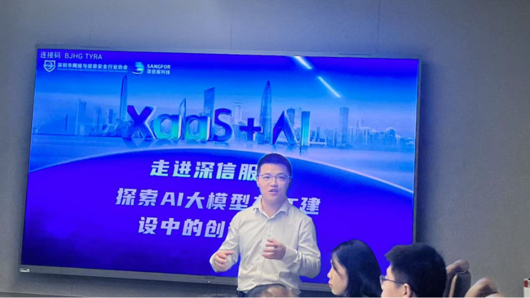 隨后,活動進入主題分享階段。深信服深圳分公司的資深云技術專家譚飛越女士以及資深網絡安全專家陽海斌先生,就“向AI升級:深信服一朵云不僅承載DeepSeek,更引領AI應用創新”以及“構建基于大模型的網絡安全未來”等議題展開了精彩的演講。兩位專家首先對當前AI大模型在不同領域的應用進展和趨勢進行了深入分析,并探討了DeepSeek等AI大模型在網絡安全及云安全業務中的發展方向和潛在機遇。接著,他們結合深信服公司的實踐經驗,詳細介紹了面對這些新趨勢時,公司在技術創新和產品融合方面所采取的一系列策略,并分享了相關的實際案例以及取得的顯著成果。