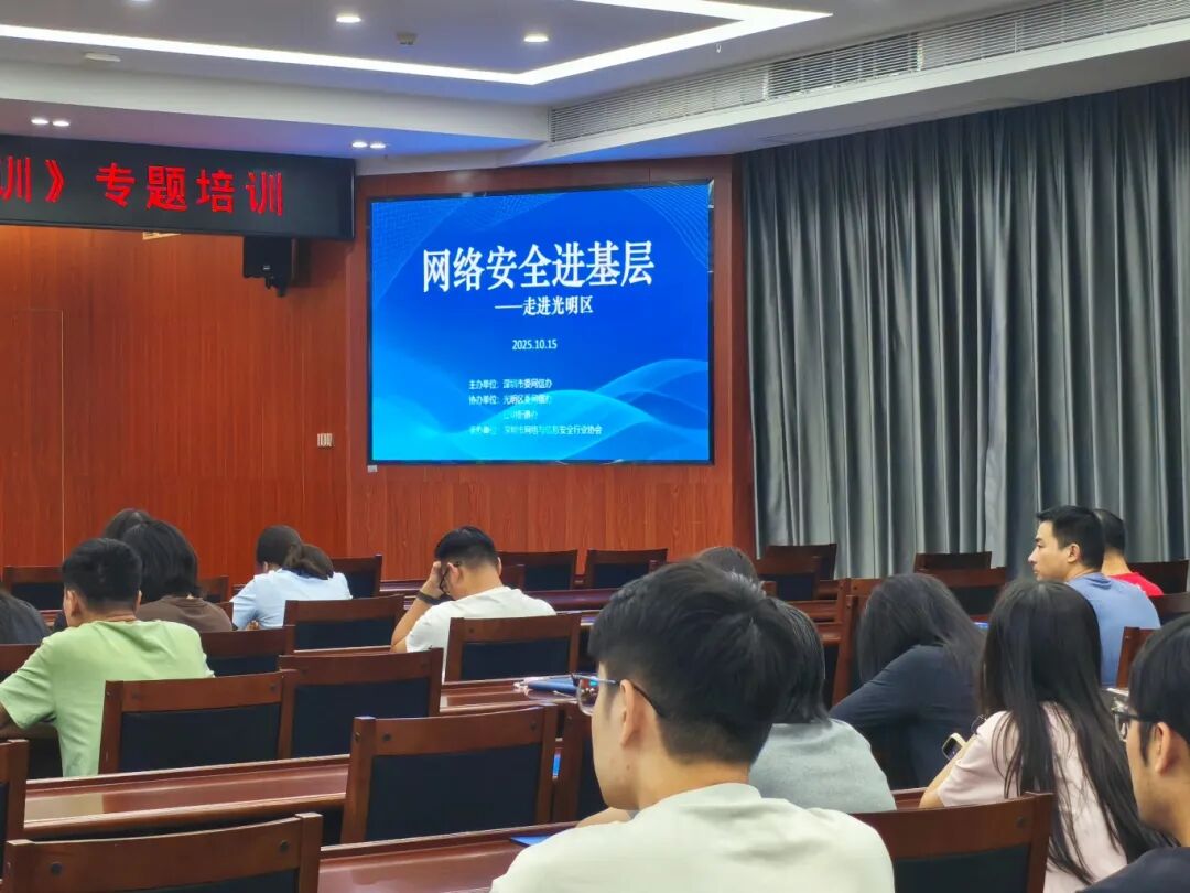 10月15日,網(wǎng)絡(luò)安全進(jìn)基層走進(jìn)光明區(qū),在光明區(qū)公明街道辦事處7樓黨課大講堂,來(lái)自公明街道黨政和人大辦公室、公共服務(wù)辦公室、平安法治辦公室、黨建辦、紀(jì)工委、各社區(qū)代表等70余名代表參加現(xiàn)場(chǎng)學(xué)習(xí)。
