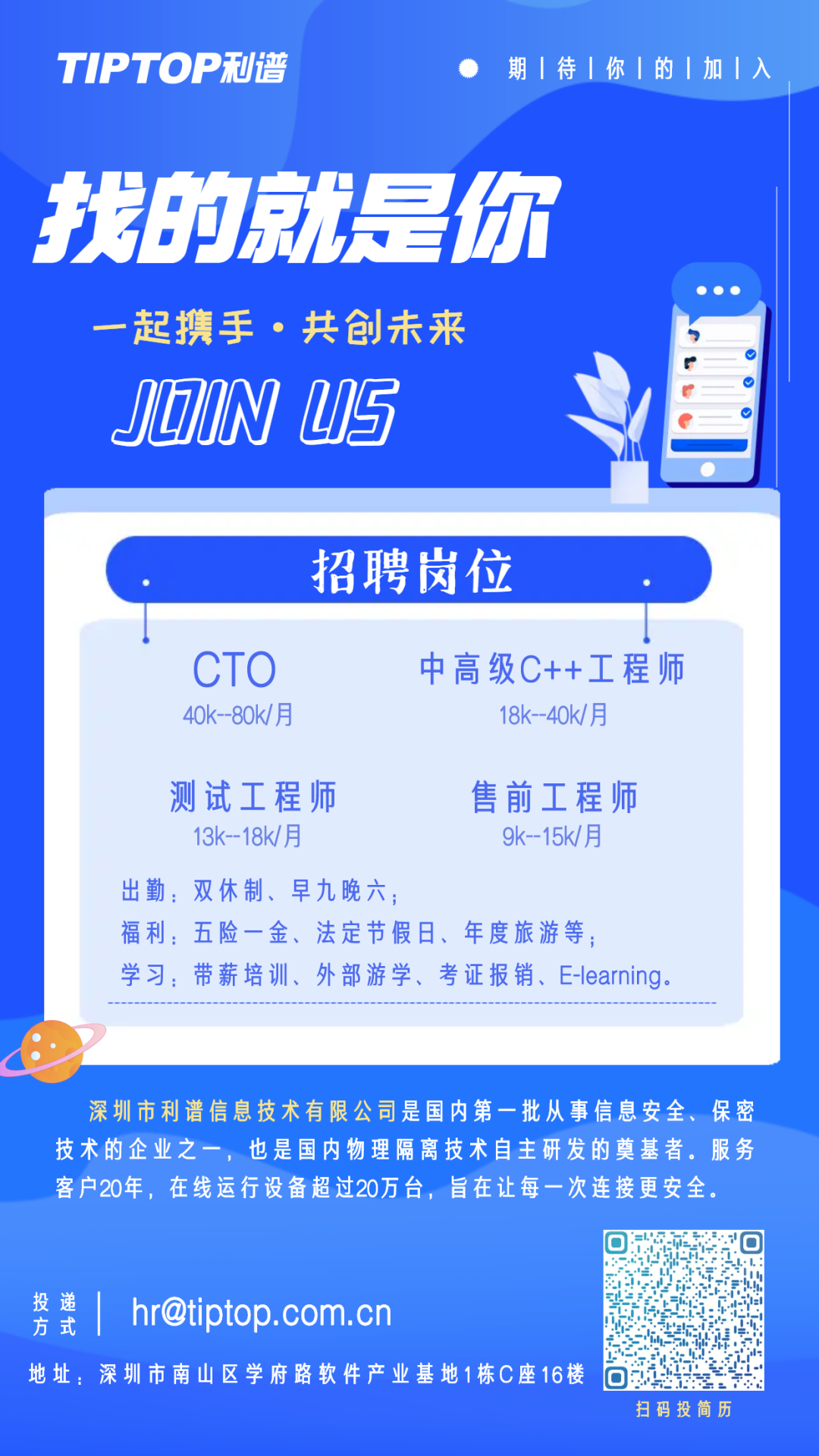 隨著國內(nèi)信息安全政策法規(guī)持續(xù)完善優(yōu)化,網(wǎng)絡(luò)安全市場規(guī)范性逐步提升,政府及企業(yè)客戶在產(chǎn)品和服務(wù)上的投入穩(wěn)步增長,國內(nèi)網(wǎng)絡(luò)安全市場規(guī)模不斷擴大。公司一如既往地堅持在網(wǎng)絡(luò)完全行業(yè)深耕,希望志同道合的你能夠與公司一起因勢而謀、應(yīng)勢而動、順勢而為,實現(xiàn)個人和公司的共同躍遷。