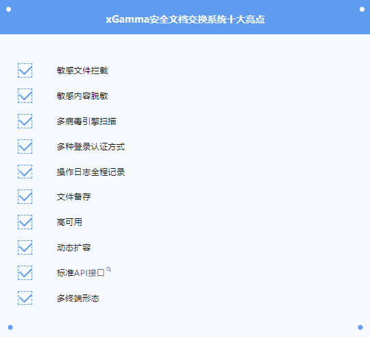 xGamma安全文檔交換系統提供統一的管理平臺,用戶操作過程全流程記錄,審計稽核有據可查,節省了人力監督成本。